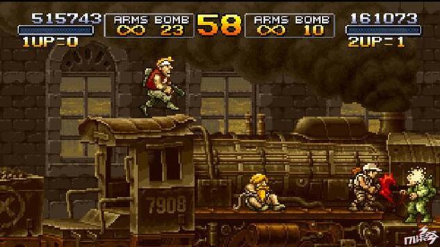 比合金弹头更早一些的是FC上的著名游戏“赤色要塞”(我们那里叫它“开小车”)。这是又一款以救人质为目的的游戏,虽然最终Boss是一个大坦克,但从介绍来看,你实际上是要去救被关押的战友。而战友们也没有亏待你,游戏里可救的战友分黄色和绿色两种,绿色的送上直升机一定数量后可以升级火箭筒,而黄色的吃了直接就能升级火箭筒。(因为比较屌所以黄色小人自己会乱跑,经常冲向敌方枪林弹雨,接起来很费一些功夫)所以玩《赤色要塞》时最有意思的就是双打然后抢小人。游戏里1P、2P不能互相攻击,小人被对方抢了只能默默忍受并期待对方赶紧死,因为一死小人就会跑出来然后就可以去抢啦!