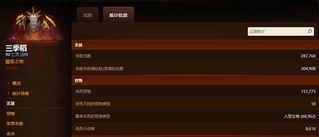 在魔兽世界国服英雄榜还未关闭的时候,就有玩家查询过三季稻的统计信息,可以非常明确的看到三季稻在当时的荣誉击杀数量为12W多,这个数据对于大多数玩家来说都是非常多了,再看看胖哥,都8.0版本了荣誉击杀还没破十万。