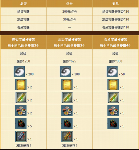 得到完整的“藏宝图”之后,侠士便可以根据图纸所绘的宝藏位置在本服进行踩点挖掘,获得拼接踩点奖励。本服踩点时宝藏所在的位置即为该宝藏所在的跨服位置,大侠可携带藏宝图和铁铲前往跨服地图进行挖宝。挖掘宝藏可获得丰富大奖,在不同等级的藏宝图指引下挖出的奖励也有不同。具体藏宝图等级划分请参见官网说明。
