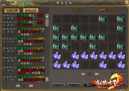由于打boss时会得到大量的珍稀物品,这些物品需要帮会统一收集,再发放至各家族。因此为了各帮会的便利性,《剑侠世界2》将开启帮会仓库作为帮会的公共存储空间。不过为了仓库的安全性,只有少数具备权限的管理员才可在帮会仓库中存入或取出物品,在特定的条件下譬如管理员开放存入后,所有帮众将拥有10分钟时间可自由将物品存入仓库中。