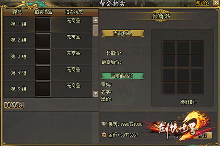 为了减少帮会内部权益分配的困扰,《剑侠世界2》将新增帮会拍卖系统。帮会拍卖完全由侠客自主发起,由拍卖师编辑拍卖单并发起拍卖,有意向的帮众即可加价竞拍,竞拍成功后将获得拍卖物品。通过举行内部拍卖会,可将活动争夺所得的重要道具兑换成金币/银两,再以工资的形式发放至各家族,省时省力更省心哦。