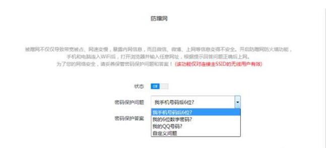 2. 二级防蹭网功能:不是所有的路由器都有这个功能哈,这个功能可以理解为,连上WIFI后要上网,还需要再经过一次认证(认证的问题和答案可以自定义的),有了这种认证方式,就算有WIFI万能钥匙也是没招的。除非有人知道你的路由器登录密码,可以进管理页面偷偷查看!