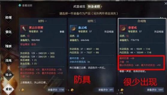 特别提醒:逆水寒中,同一个属性词条出现两条时,除了武器,其它装备的重铸产物中是无法继承,简单来说就是词条上下限数值以后没法洗。想要洗只能重复上面的方法,但是花费将是天价!