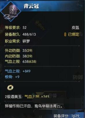 防具上选择就简单很多了!但是说起来基本上是看脸!目前最需要的属性就是血量,攻击,技能,而攻击技能这两个属性在防具上是不能出来的,那么就只剩下血量!所以防具上尽量去搞气血上限、根骨、基础气血这样为一体的装备即可!目前只有一件防具成型了,是双根骨+基础气血的!其他都是单根骨,单气血!表示任重而道远!