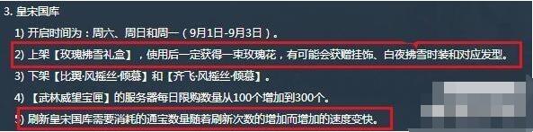 “刷新国库需要消耗的通宝数量随着刷新次数的增加而增加的速度变快”简单理解:你刷新国库需要的元宝会跟着刷新次数越来越高!从这两条公告当中,哪怕白夜拂雪加入了国库,也是不会增加太多获得白夜拂雪的人数,反而会更加激发玩家对于舞阳城的掉落白夜拂雪的心情!